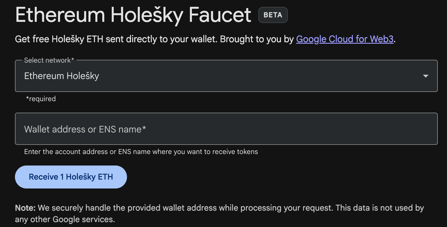 访问测试水龙头: 👉 https://cloud.google.com/application/web3/faucet/ethereum/holesky