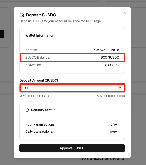 在这里你可以看见你当前的 USDC 余额,在下方输入框中输入金额,点击 Next Step(下一步),然后点击 Authorize USDC(授权 USDC)