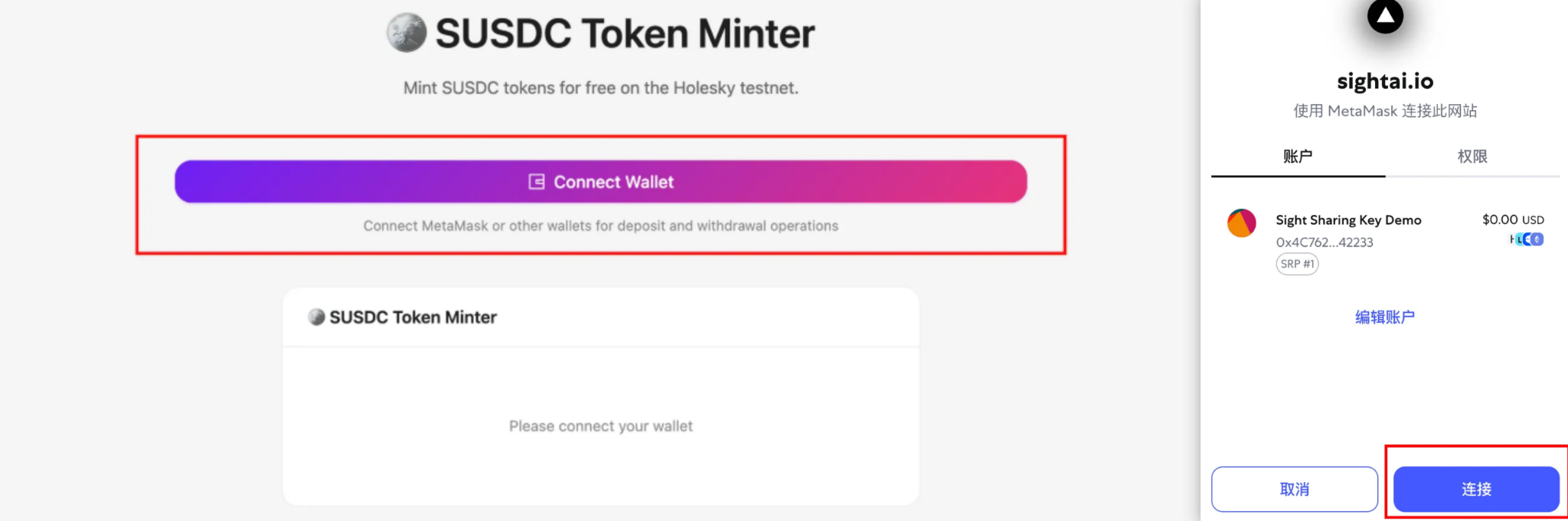 ✅ 第四步:将钱包连接到 Sight 平台