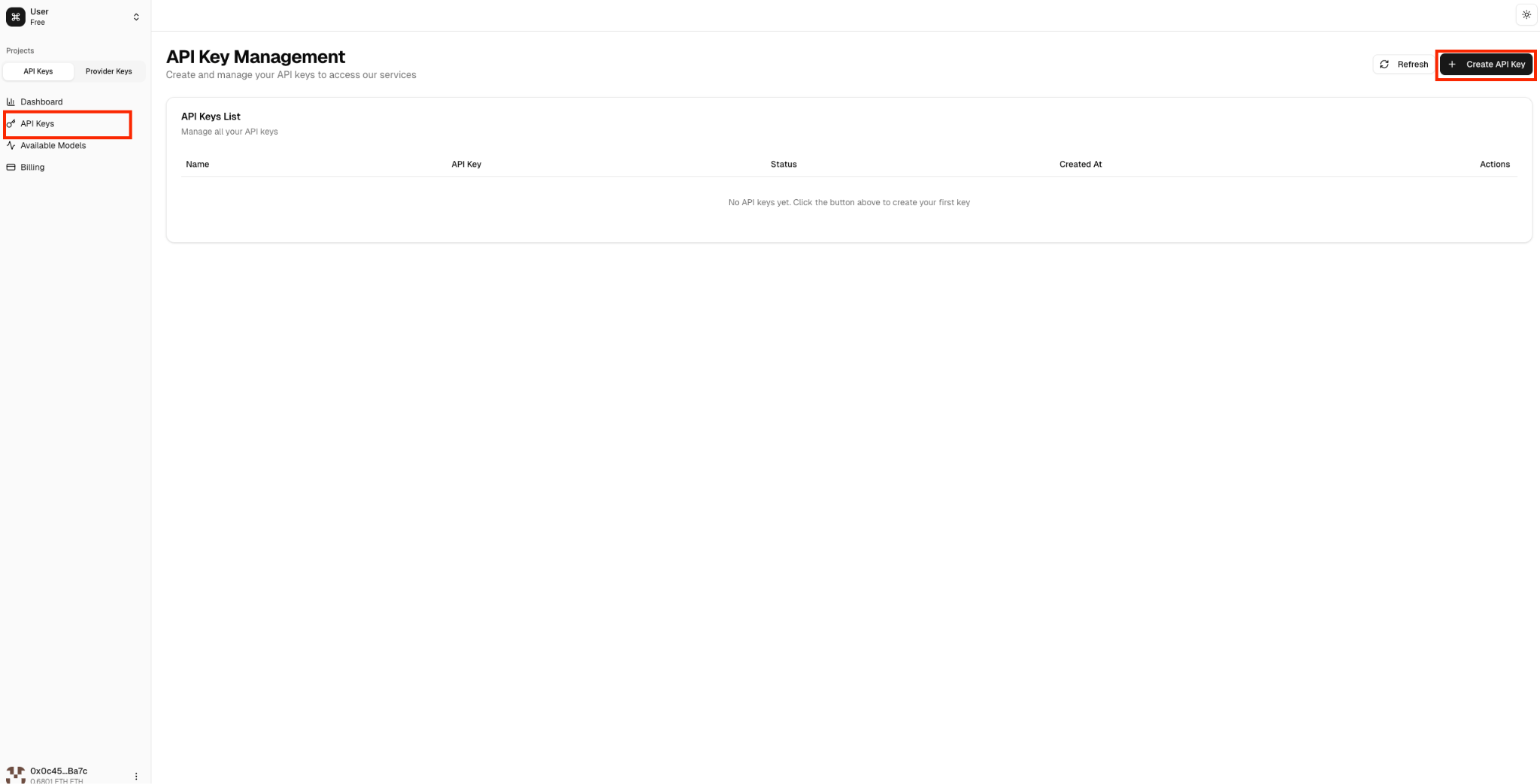在左侧边栏点击 API Keys,然后点击 Create New Secret Key(创建新的密钥)