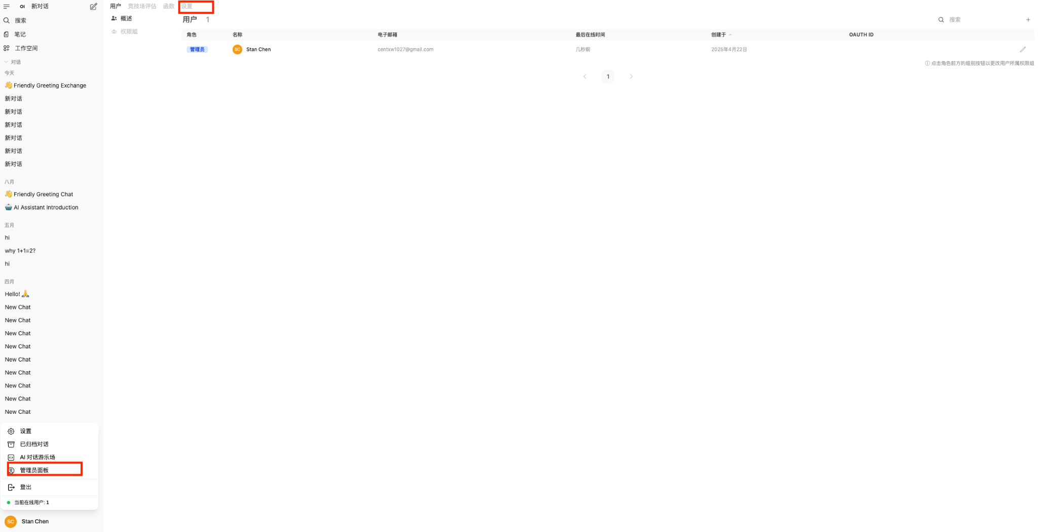 在 openwebui 中点击左下角的管理员面板再点击上方的设置: