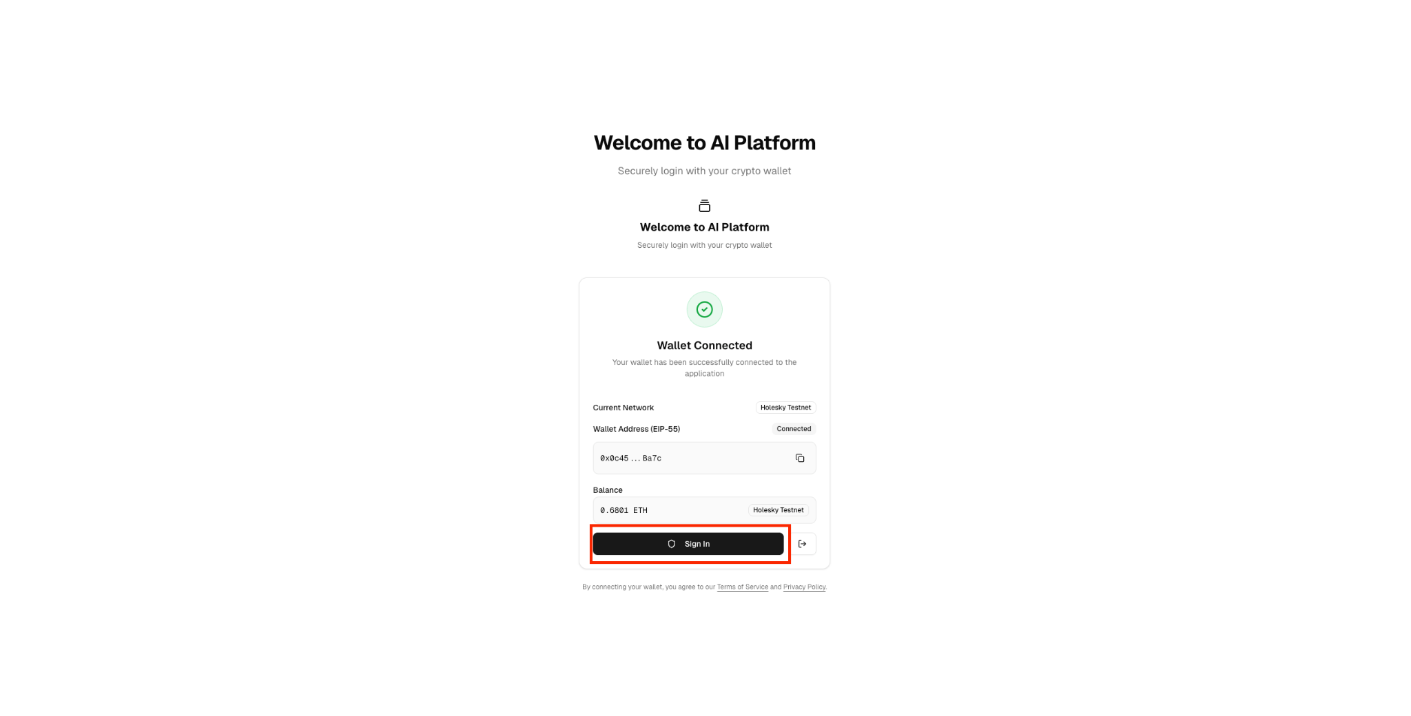3. 连接后,点击“Sign in”按钮,完成钱包确认