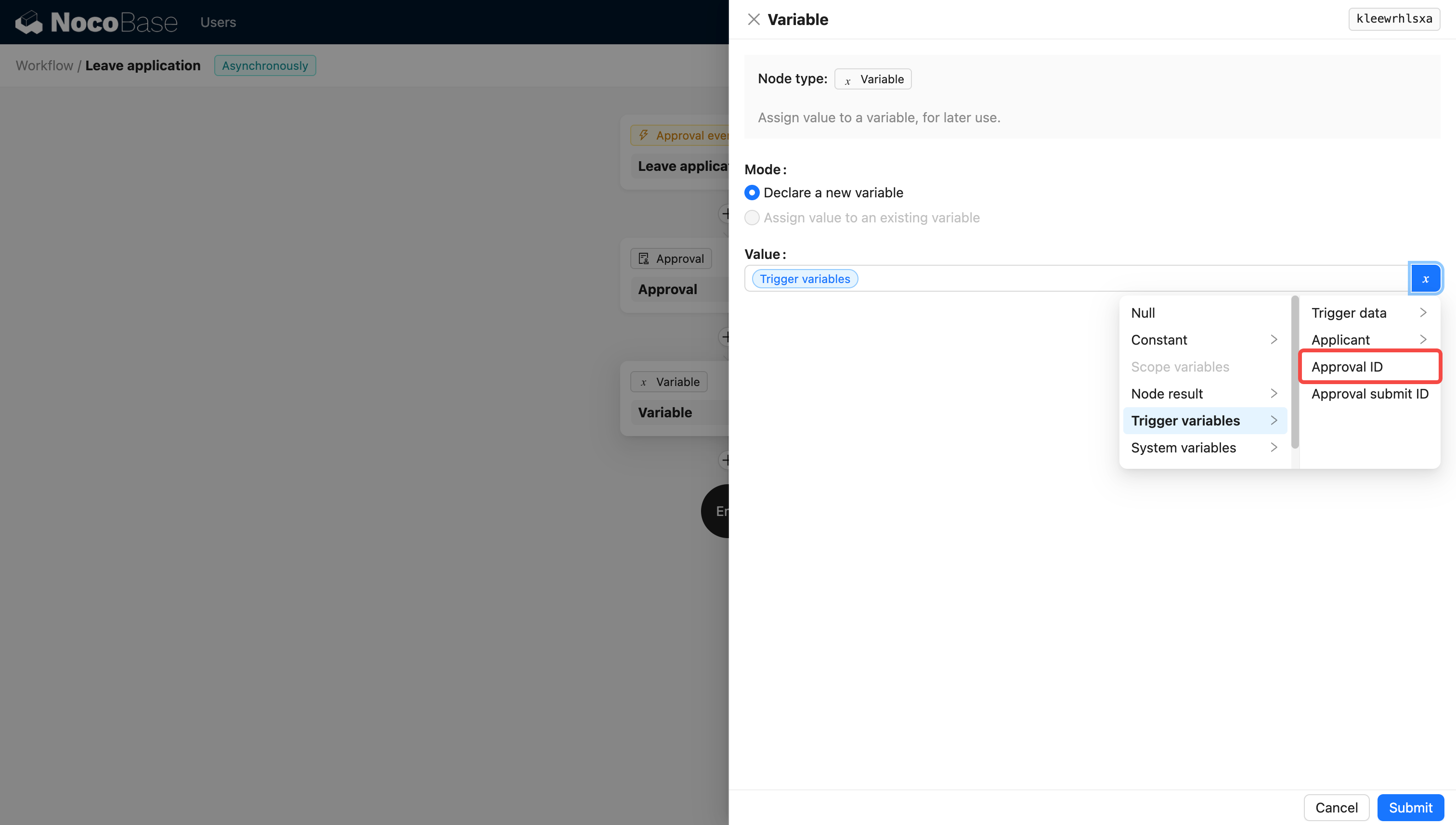 公开了 Approval ID 变量,允许在工作流其他节点中引用,以实现更灵活的配置和数据跟踪。