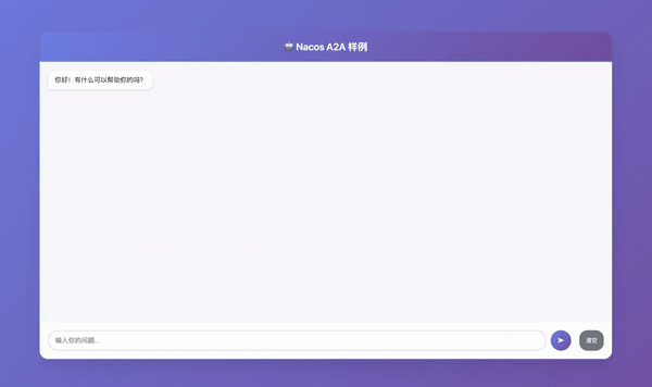 <properties> <spring.ai.alibaba.version>1.0.0.4</spring.ai.alibaba.version> <spring.boot.version>3.4.5</spring.boot.version></properties><dependencies><!-- 引入A2A Client starter --> <dependency> <groupId>com.alibaba.cloud.ai</groupId> <artifactId>spring-ai-alibaba-starter-a2a-client</artifactId> <version>${spring.ai.alibaba.version}</version> </dependency><!-- 引入A2A Nacos 注册中心 --> <dependency> <groupId>com.alibaba.cloud.ai</groupId> <artifactId>spring-ai-alibaba-starter-a2a-registry</artifactId> <version>${spring.ai.alibaba.version}</version> </dependency><!-- 可选,引入web构建简单的页面 --> <dependency> <groupId>org.springframework.boot</groupId> <artifactId>spring-boot-starter-web</artifactId> <version>${spring.boot.version}</version> </dependency></dependencies>