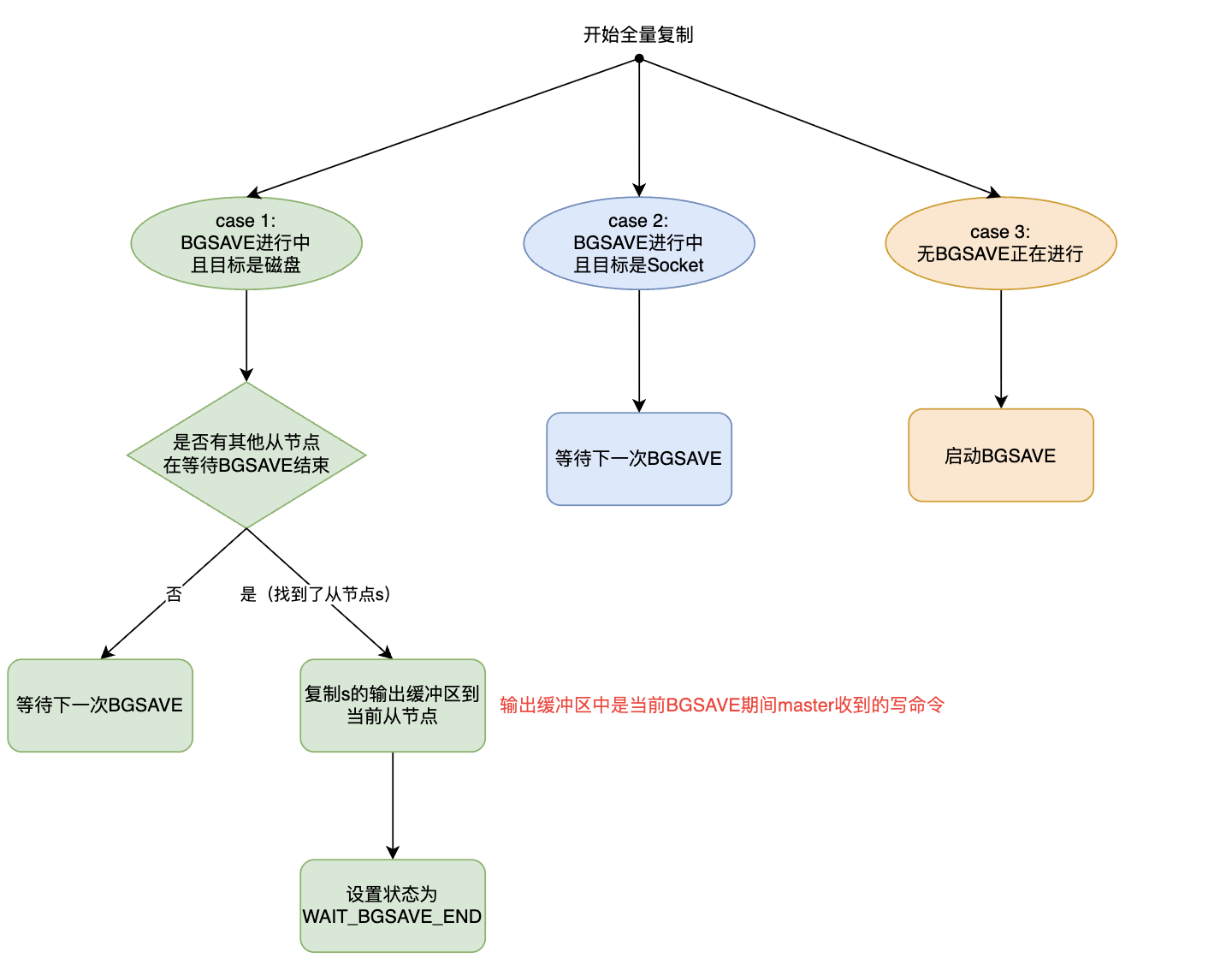 从 canFeedReplicaReplBuffer 函数的实现中可以看到,只要从节点状态不是 SLAVE_STATE_WAIT_BGSAVE_START,写命令就会通过 addReply 系列函数添加到从节点对应的客户端输出缓冲区中。这意味着在以下状态下,命令都会被缓冲: