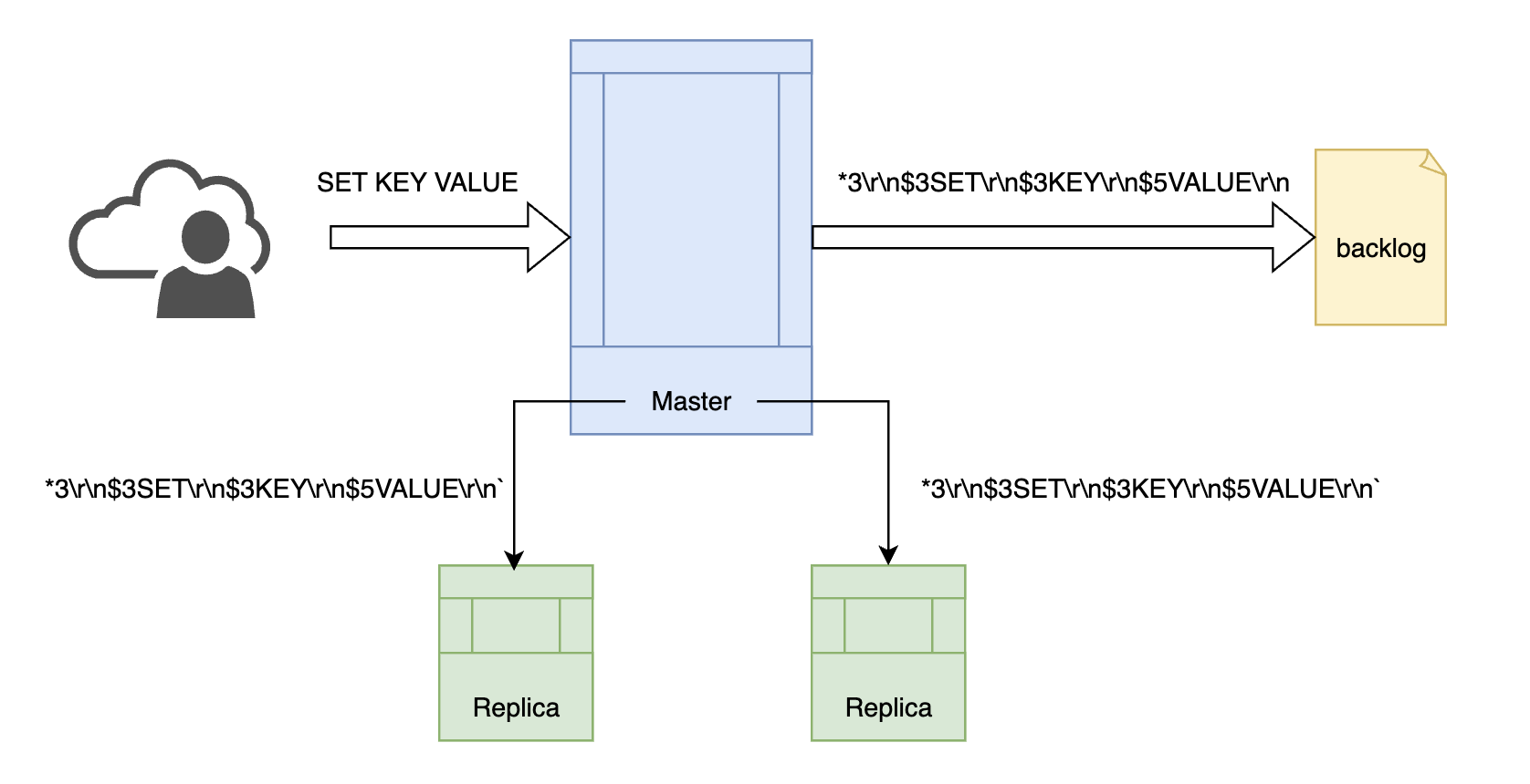 主节点发送给从节点和复制积压缓冲区的命令都为 RESP 格式。