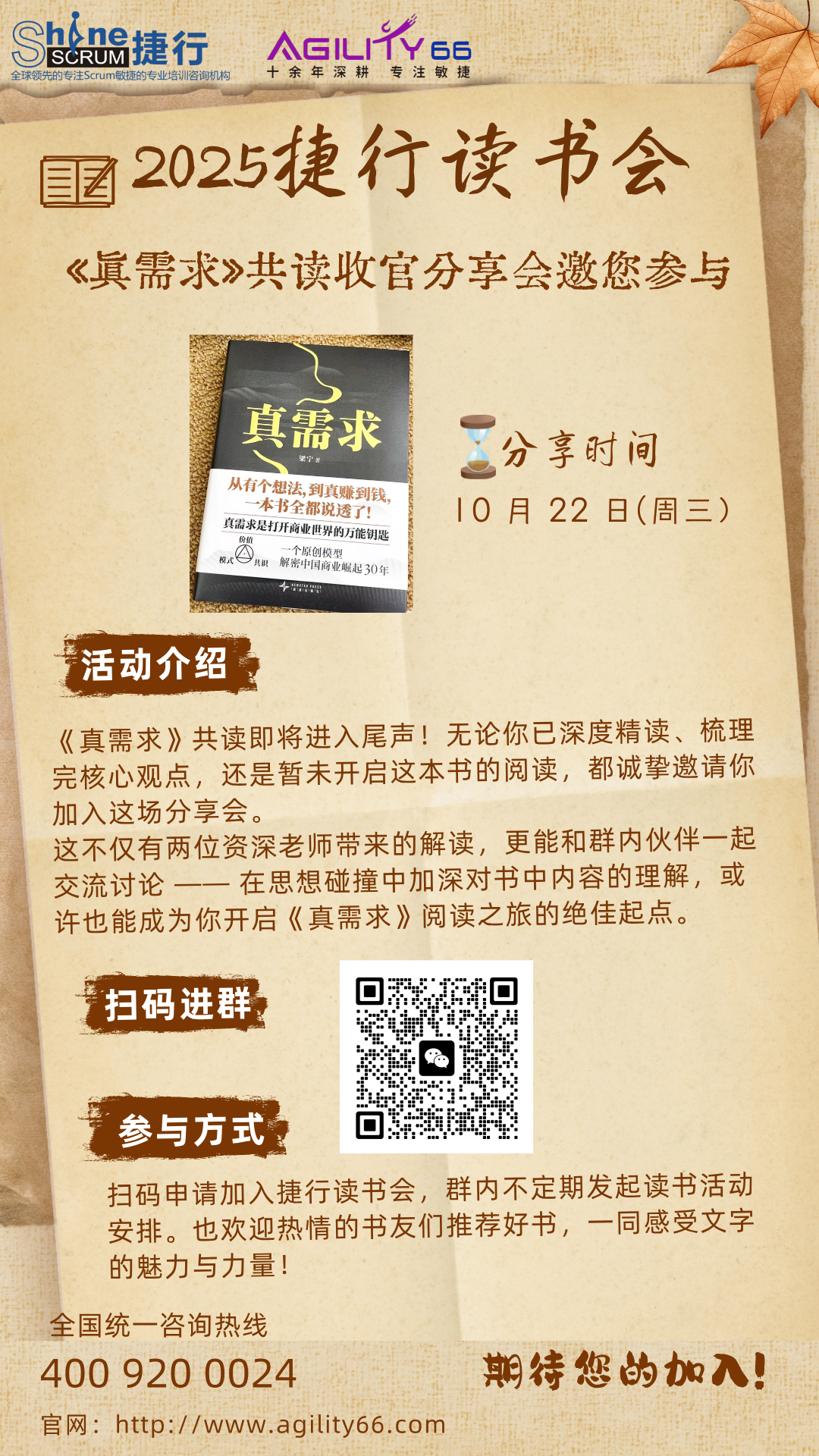 《真需求》共读即将进入尾声!无论你已深度精读、梳理完核心观点,还是暂未开启这本书的阅读,都诚挚邀请你加入这场分享会。这不仅有两位资深老师带来的解读,更能和群内伙伴一起交流讨论 —— 在思想碰撞中加深对书中内容的理解,或许也能成为你开启《真需求》阅读之旅的绝佳起点。欢迎各位扫码进群参加哦~