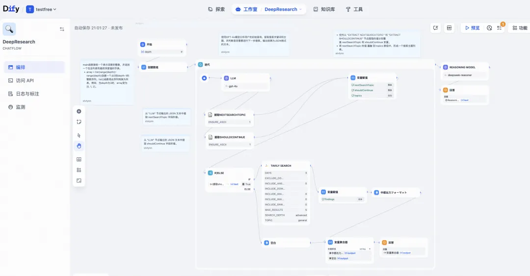 如图的示例场景,在 Dify Workflow 的某次执行中发现知识检索的输出总是为空,但是 Dify 控制台上又没有报错信息: