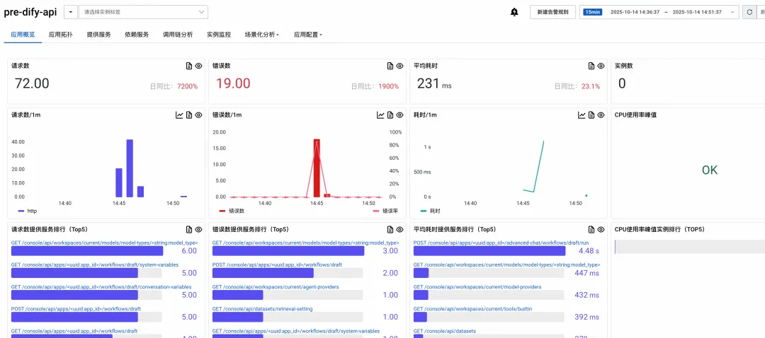进入应用监控列表可以看到 dify-api 应用,应用详情示例: