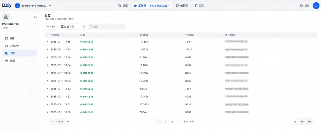 然而内置的应用监控在分析能力和性能两个方面存在不足。在分析能力上,Workflow 上线后对其观测数据需要多维度的聚合分析或二次加工,问题排查也需要关键字、时间范围、模糊匹配、错误类型等多维度的检索能力,但 Dify 自带的监控只能通过会话 ID 和用户 ID 等有限方式检索,不能满足数据分析和问题排查的需要。在性能上,受限于在 DB 中记录执行日志的数据存储方式,内置应用监控在大规模应用的生产环境下性能不佳,日志数据加载较慢甚至大量的执行明细数据会拖慢数据库整体性能,需要在后台 Celery 任务中配置清理任务周期性清理日志数据。