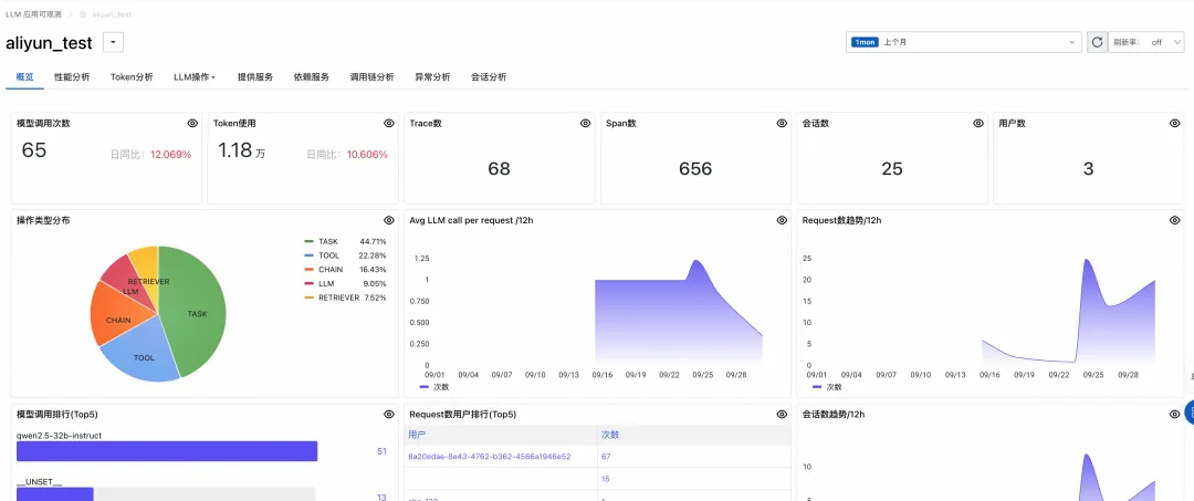 配置完毕后在 Dify 控制台或通过 Dify API 发起几次请求,稍等 1~2 分钟即可登录阿里云控制台查看上报的数据。