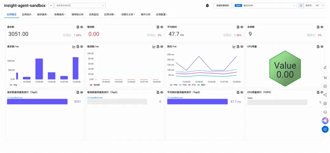 在应用列表页面进入 dify-sandbox 应用,监控详情如下: