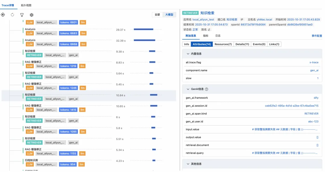此时,可以根据 Dify 对话 ID、用户 ID 等信息在云监控上定位对应的 LLM Trace: