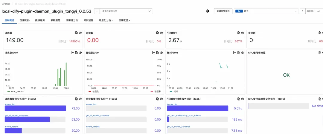 在应用列表页面进入 dify-plugin-daemon 应用,监控详情如下: