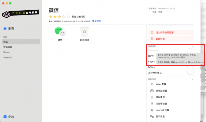 注意:D3DMetal 功能仅支持苹果 M 系列芯片,并且需要 macOS Sonoma 的系统版本。
