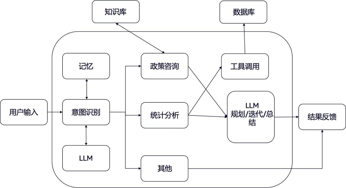 我们以企业 HR 智能助手场景为例,搭建一个支持 RAG 及 text2SQL 数据分析的智能 Agent。业务流程参考: