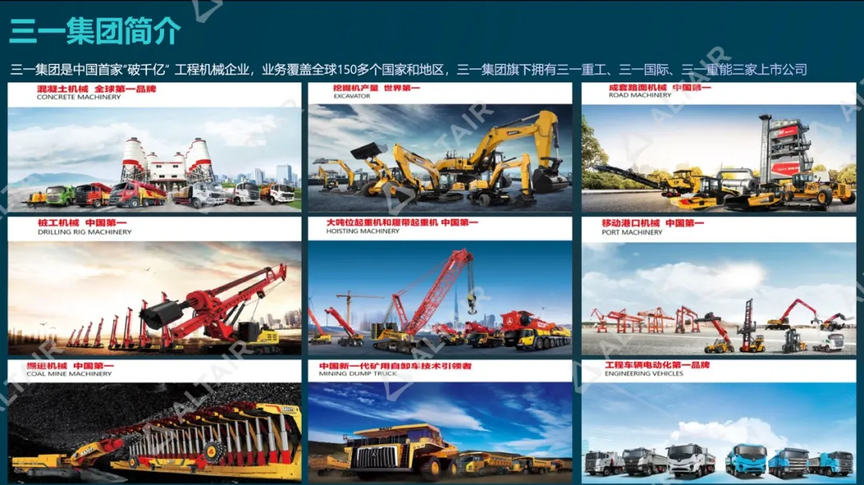 三一集团始创于 1989 年,业务全面涉及混凝土机械、挖掘机械、起重机械、筑路机械、桩工机械、风电设备、港口机械、石油装备、煤炭装备、装配式建筑 PC 等,是中国首家“破千亿”工程机械企业,旗下拥有三一重工、三一国际、三一重能三家上市公司,业务覆盖全球 150 多个国家和地区。
