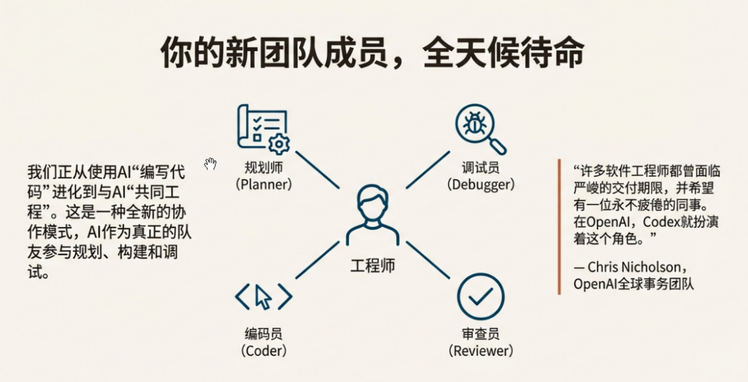 作为一名软件工程师,你是否也曾面临严峻的交付期限,并幻想能拥有一位从不知疲倦的同事?正如 OpenAI 的 Chris Nicholson 所说,这几乎是每位开发者的心声 。在 OpenAI,他们的 AI 编程工具 Codex,正悄然扮演着这个角色。
