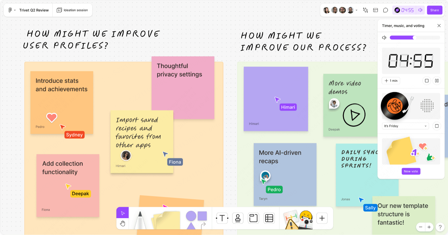 对于设计师而言,离开 Figma 去画图是多余的。FigJam 作为 Figma 的白板模式,其杀手锏在于庞大的插件生态(Plugins)。