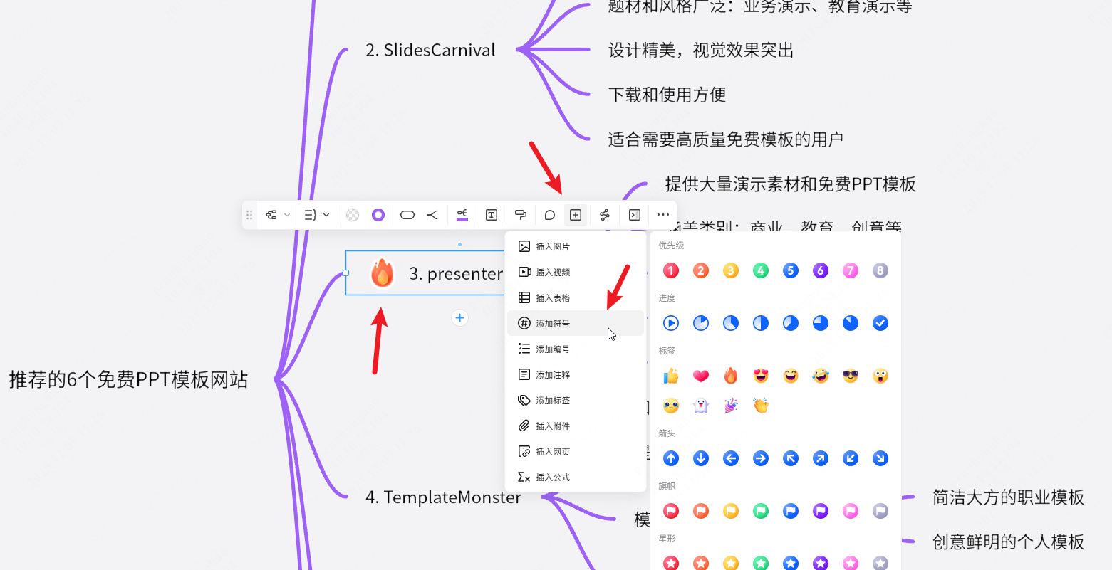纯文字的导图是枯燥的。在每个一级节点前加一个 Emoji 或简单的 Icon。这不仅是装饰,更是为了利用人脑对图形记忆优于文字记忆的特性,瞬间提升专业感。