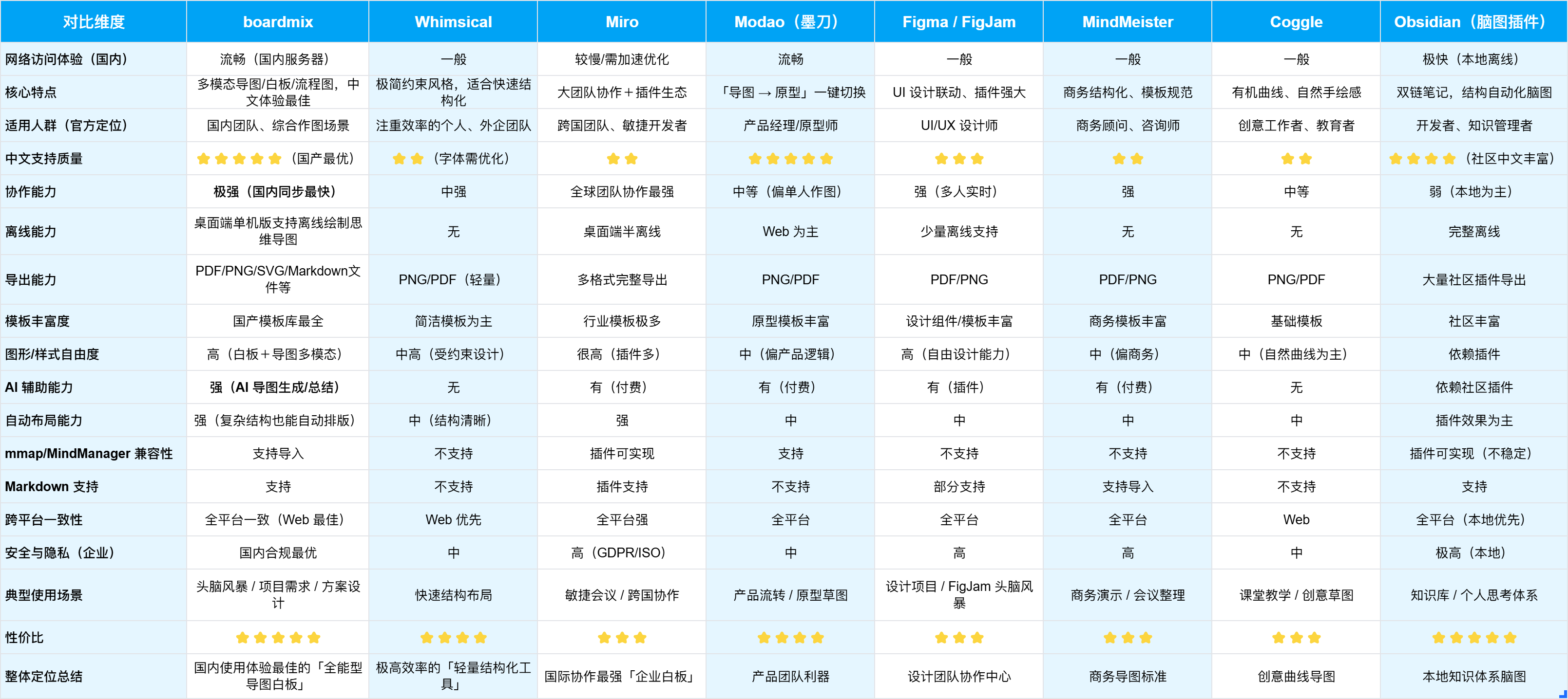 第一梯队:全能协作与创意白板(boardmix & Whimsical)