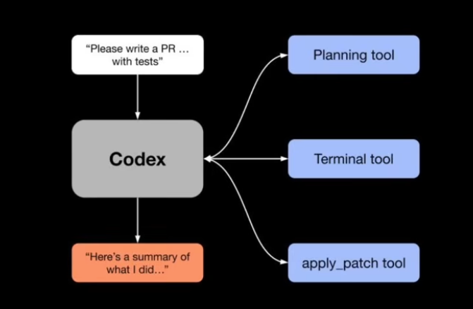OpenAI 对智能体的理解是,它们与外部世界的所有互动都会反馈回上下文窗口中。这意味着,智能体在查看了它发送给工具的内容以及从工具那里收到的输出后,会进行自我推理,然后决定调用另一个工具,并重复这个过程。OpenAI 自己的第一方智能体,如 Codeex 或 Deep Research,也依赖于工具(如浏览器、代码运行器或 Git 补丁工具)来完成端到端的任务。