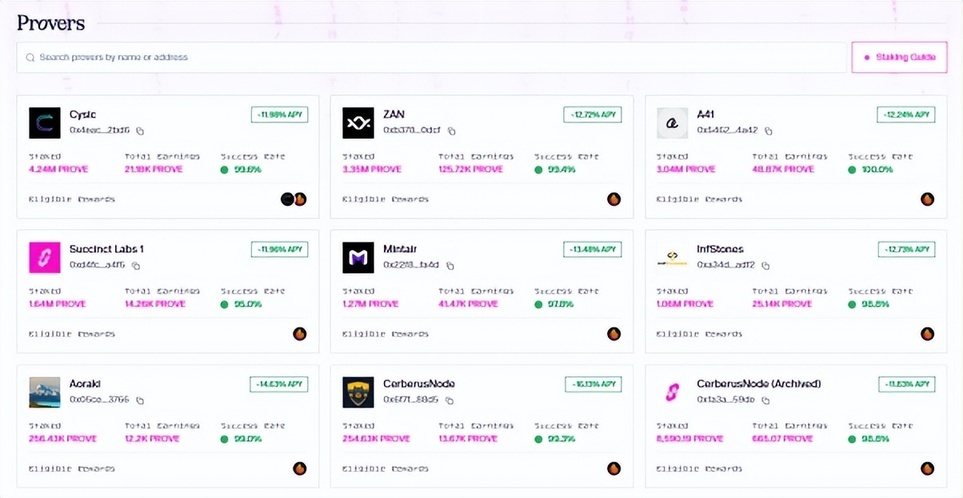 2. 安全与激励层 —— Prover 节点需要质押 $PROVE 才能接单并赚取奖励,Staker 通过质押 $PROVE 来维护网络安全并分享收益。