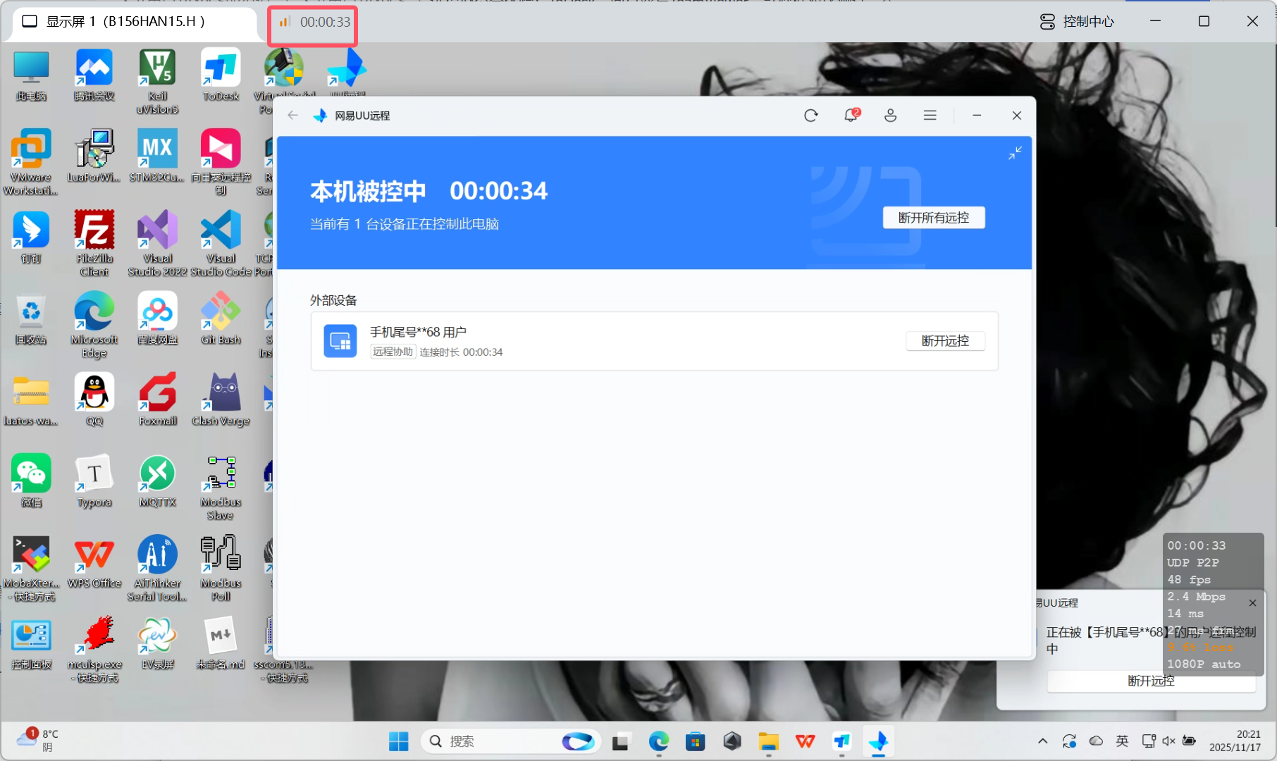 UU 远程的话只有默认的 720P,使用的时候帧率也会有较大的波动: