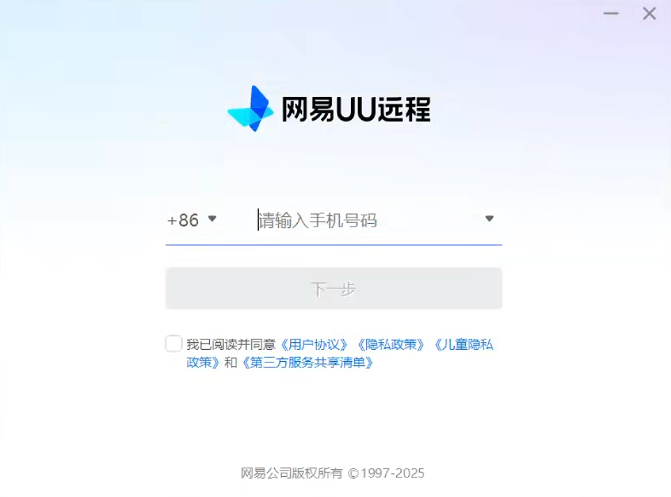 相比于其他两个远程控制软件来说,UU 远程控制软件在这一点是真的做的不好,不进行登录的话就无法进入软件,还是必须强制注册登录。
