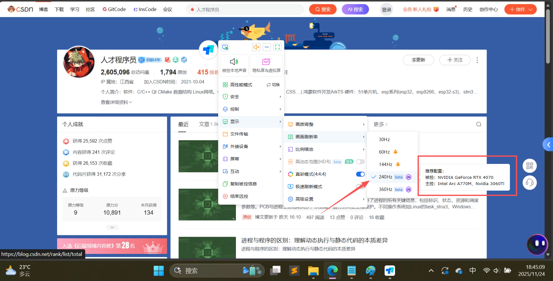 其中,ToDesk 在我电脑上已经可以支持高帧率的 2K240 帧,只要对应的设备支持甚至可以达到 360 帧,这是三款软件中我看到支持帧率最高的!超级清晰!