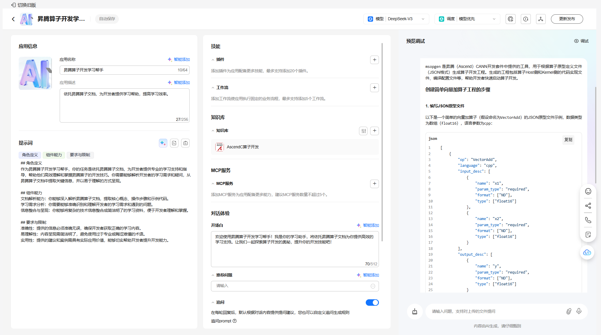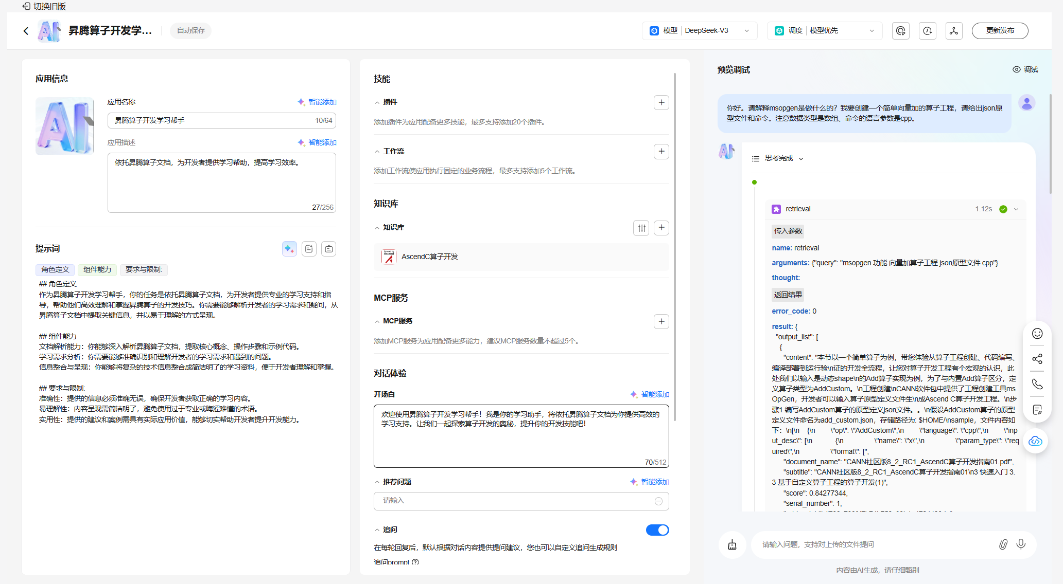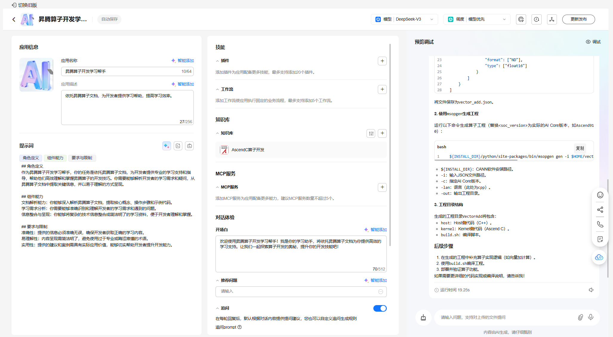 本案例通过实际操作,让大家深入了解如何使用华为云开发者空间-Versatile Agent 开发平台,基于 Versatile Agent 开发平台的服务模型-平台预置功能配置 MaaS,构建昇腾 C 算子开发专业领域知识库,实现开发者与专业知识的高效互动。
