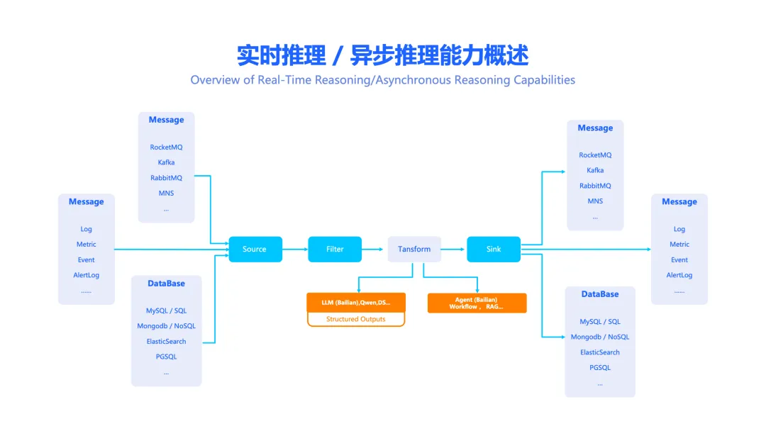 实时智能决策: 将 AI 推理能力无缝融入数据处理流程,使系统能对实时数据进行智能分析与决策,极大提升业务的智能化水平。