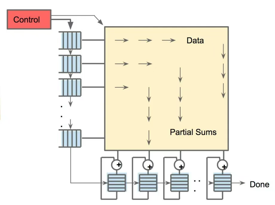 其核心组件是矩阵乘法单元(Matrix Multiply Unit) —— 一个巨大的 256×256 乘加单元(MAC)阵列,采用脉动阵列(systolic array)结构,数据以“波”的形式在网格中流动。