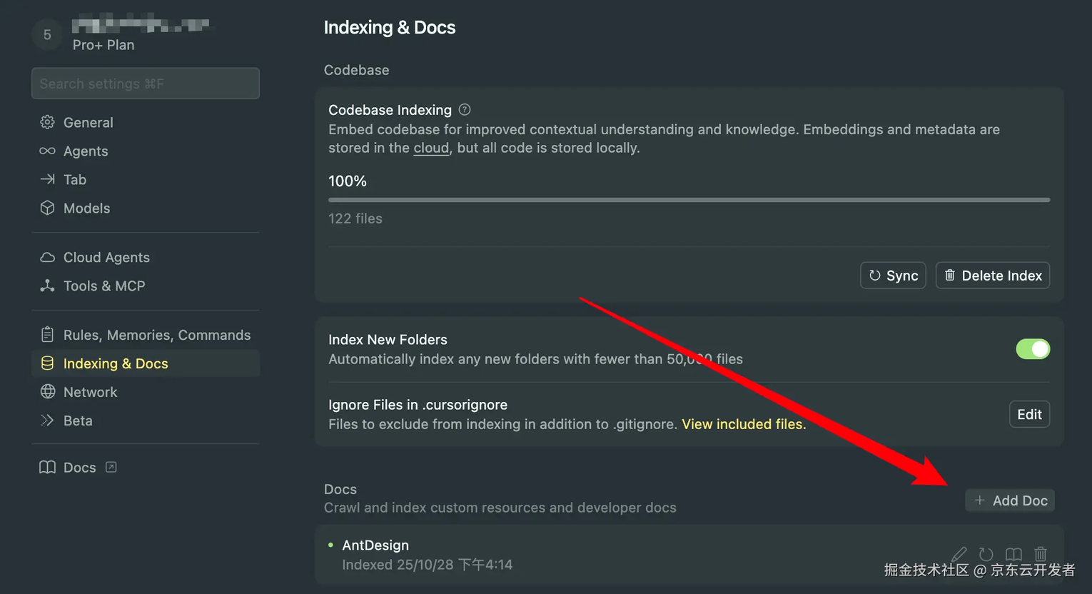 同时,主流前端工具已纷纷提供 MCP 或知识库。以 Ant Design 为例,将其官方知识库 LLMs.txt - Ant Design ,添加到 Cursor 的指定位置: