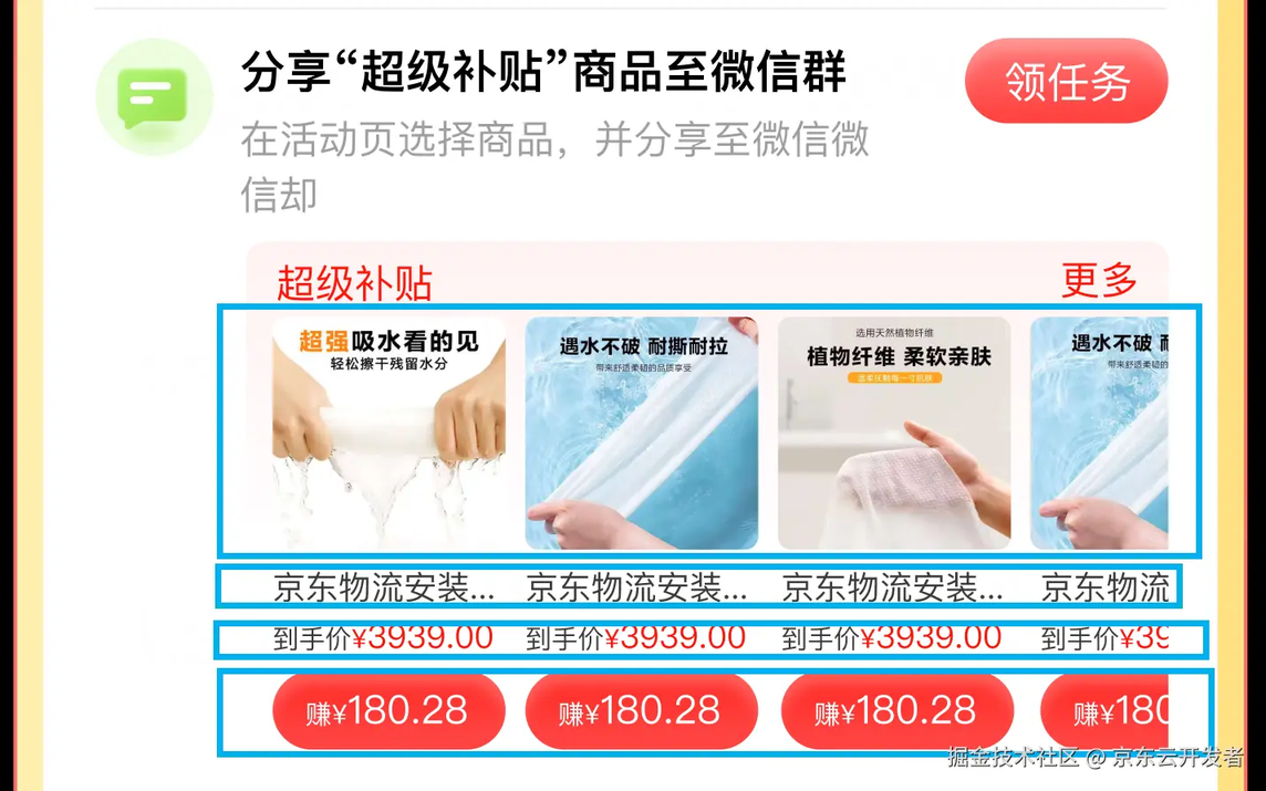 AI 将图中的商品列表拆分为多行布局——一行图片、一行商品名、一行价格、一行按钮。然而,具备前端组件化思维的同学一眼就能看出,更合理的做法是将其封装为独立的商品卡片组件进行循环渲染: