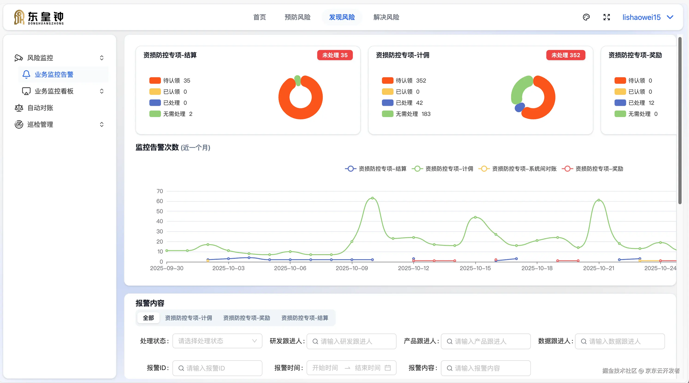 东皇钟资损防控平台,该项目由研发发起,在没有产品原型和 UI 设计的情况下,借助 Cursor 结合 Shadcn UI,我独立完成了平台 0-1 的交互与界面构建,最终成果获得了后端与测试团队的一致好评: