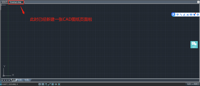 2. 执行命令后,便可新建一张空白的 CAD 图纸,在页面底部导航栏中可以根据实际需求调用各项功能,进行一些简单的绘图工作。