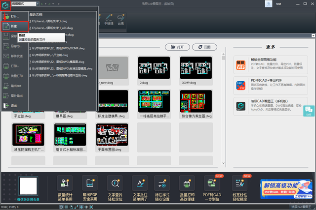 首先我们要回答这样的疑问:浩辰 CAD 看图王除了看图以外能不能画图呢?当然是可以的!浩辰 CAD 看图王包含制图、览图、协作、数据管理等功能。那么,浩辰 CAD 看图王中在哪里新建 CAD 图纸呢?