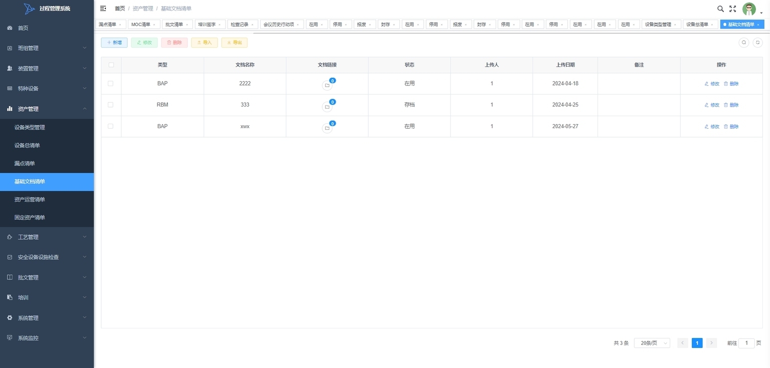 基础文档清单:管理基础文档的清单,包括文档的创建、更新和存档,以便于文档的检索和合规性检查。