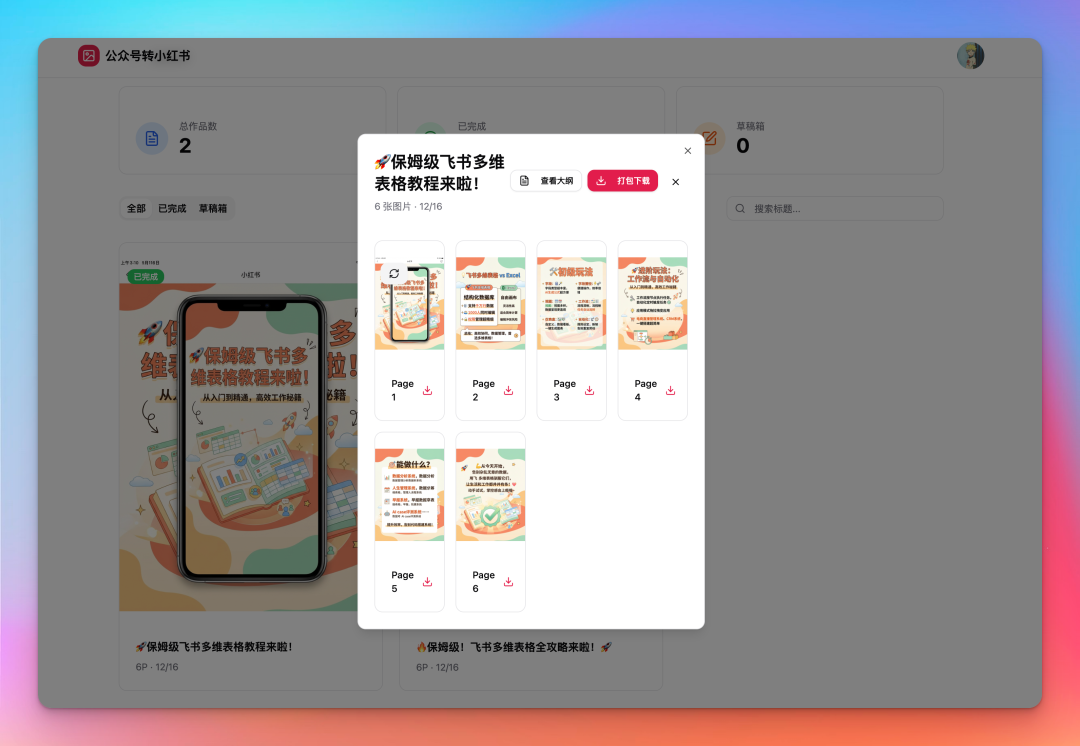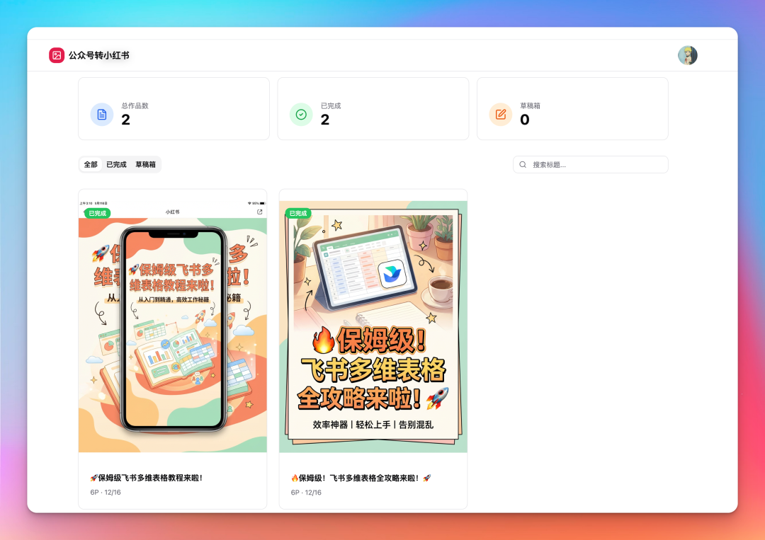 解决公众号长文转小红书图片的问题,产品暂时还没有名字。