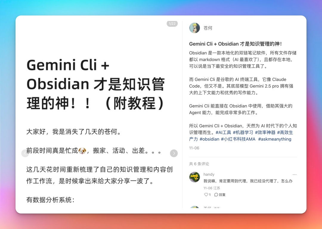 还需要迭代一些更多的能力,比如将原先 ob 插件的文案能力集成进来,能基于内容出小红薯风格的文案,这样配图和文案就有了。