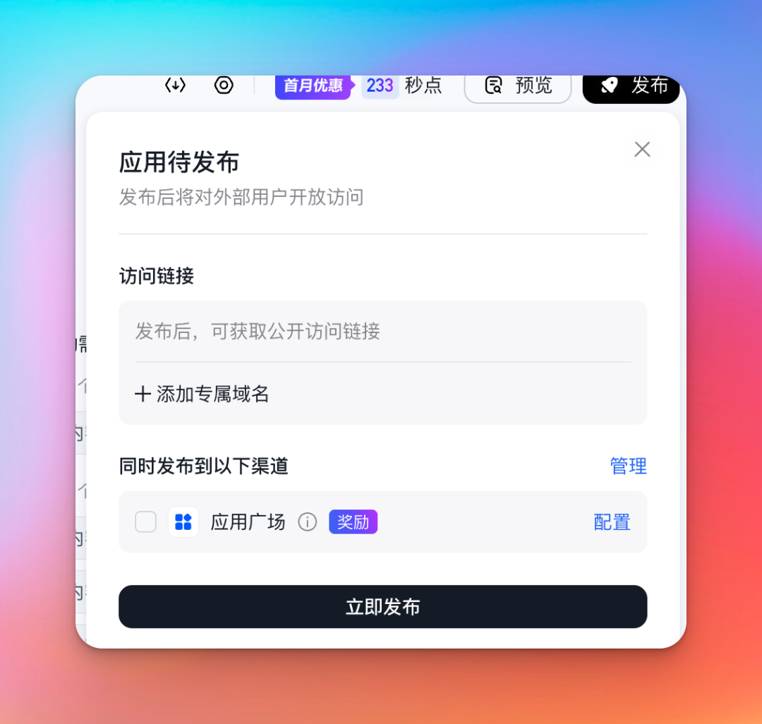 但发布其实在秒哒也很简单,配置一下发布渠道:
