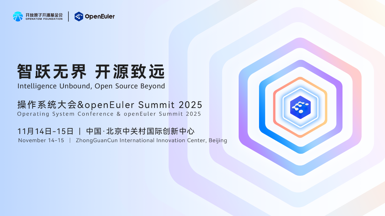 2025 年 11 月 14 日-15 日,以“智跃无界,开源致远”为主题的操作系统大会&openEuler Summit 2025 即将在北京中关村国际创新中心正式举办。本次大会由开放原子开源欧拉(OpenAtomopenEuler,简称“开源欧拉”或“openEuler”)社区主办,会上将发布 openEuler 的重要技术创新,引领 AI 时代操作系统变革,并宣布开源六年以来在商业、生态方面取得的成果,加速智能化和全球化,与用户、伙伴和开发者共同开启 openEuler 下一个五年的全新篇章,加速基础软件高质量发展。