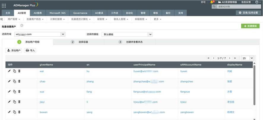 1. 向导式操作,简单三步即可完成您无需记忆任何命令或属性字段。ADManager Plus 提供了一个清晰的“批量用户创建”向导。