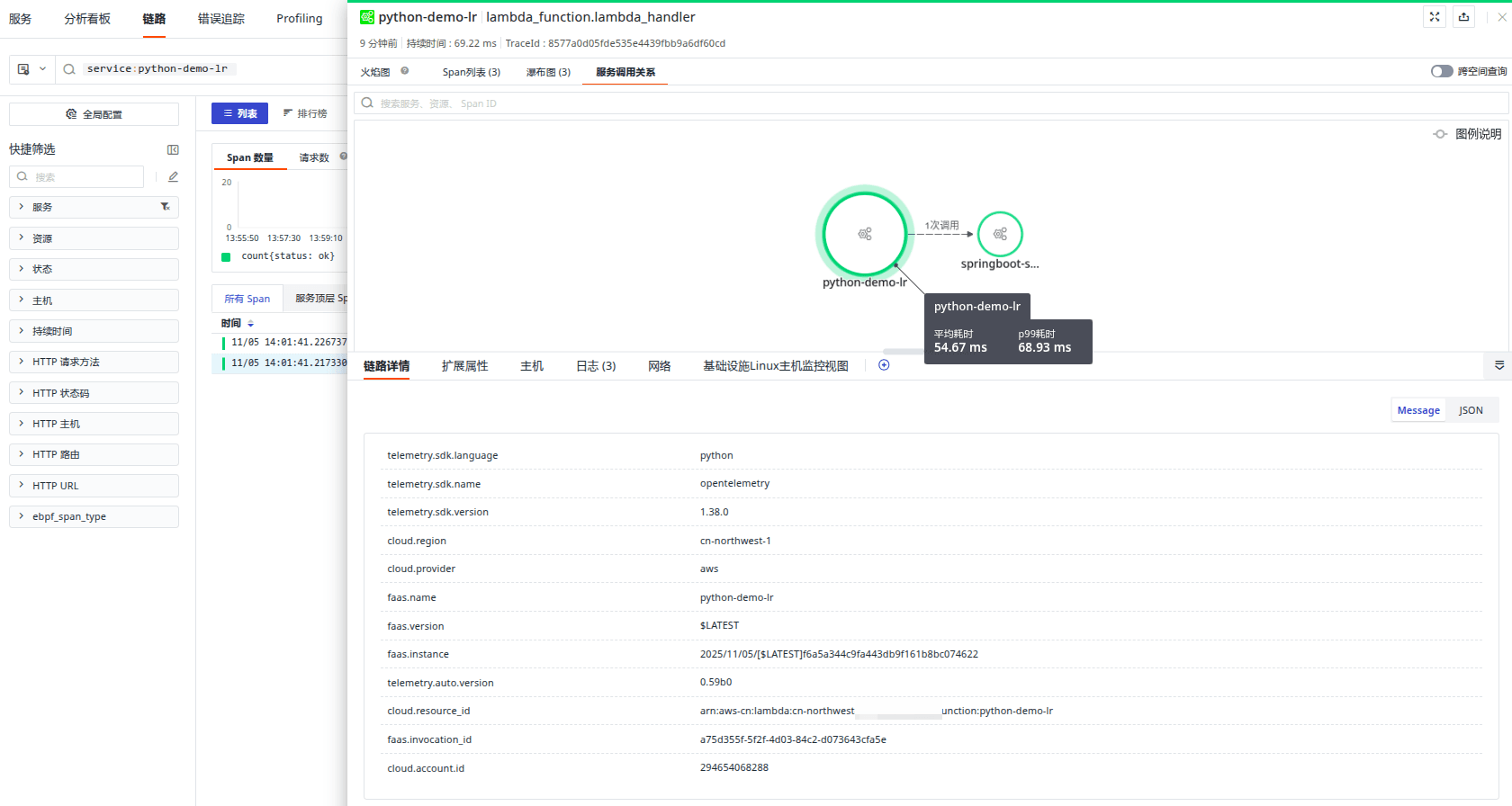 分布式链路断裂:Lambda 函数往往作为事件触发链中的关键一环,与 API Gateway、S3、SQS、DynamoDB 等服务交叉调用,传统 APM 难以串联完整调用链。