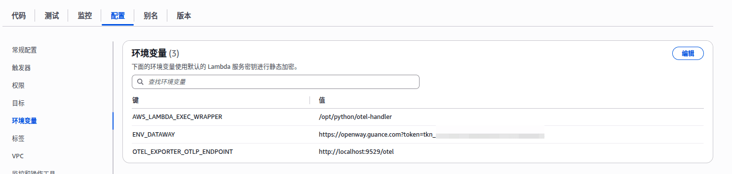 使用 OpenTelemetry 自动插桩方式可以零侵入 Python 代码实现链路追踪,这里 OpenTelemetry 可以作为 layer 附着到 Lambda 函数内部。