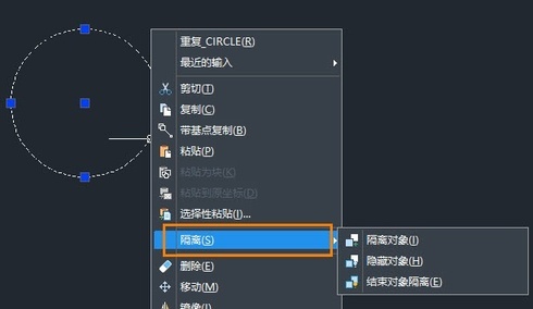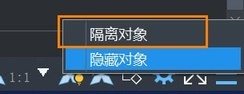 另,也可以先选择对象,然后鼠标右键菜单里进行隔离/隐藏。