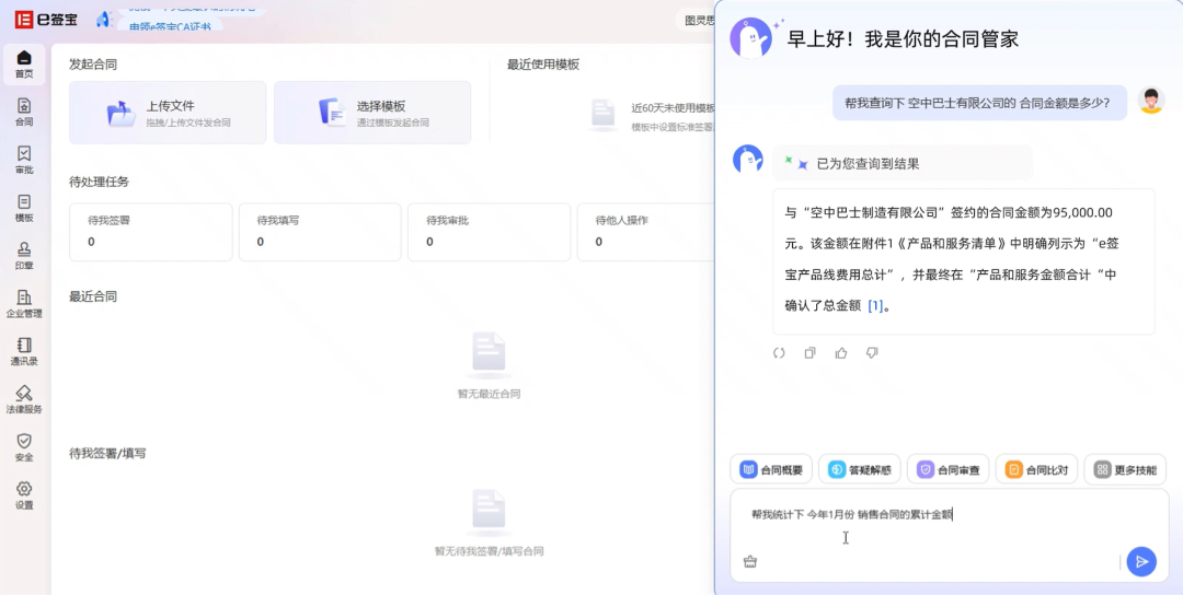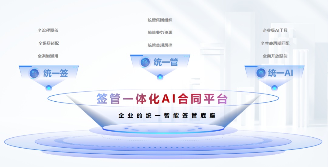 e 签宝提出“统一、智能、互信”的全球签署网络理念,通过签管一体化 AI 合同平台,帮助企业实现合同全生命周期的数字化管理。