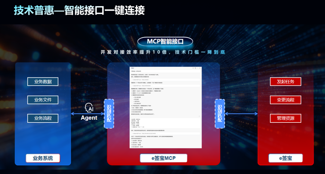 除了这些“能动”的机器人,更具渗透力的智能体也正在融入日常生活的方方面面。e 签宝展示了基于 Agent 技术的“统一、智能、互信”的全球签署解决方案。