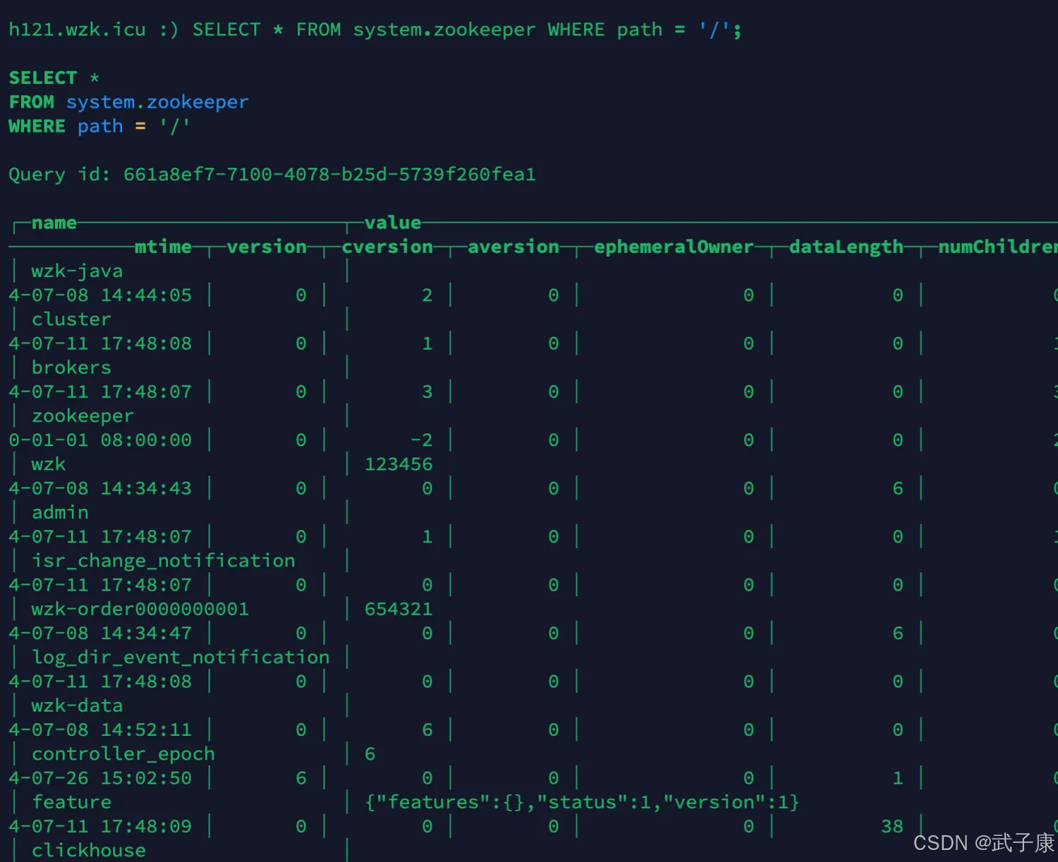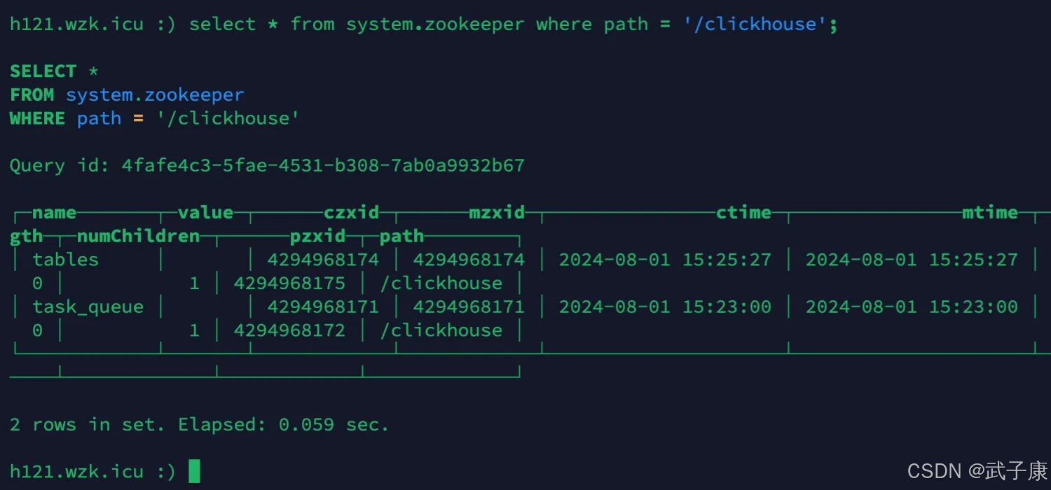 接着执行 SQL 检查是否成功链接到了 ZooKeeper